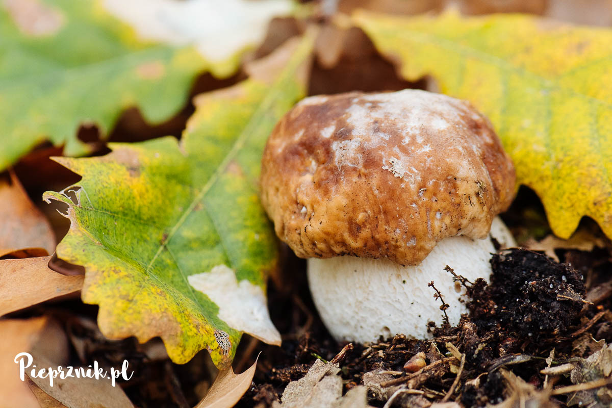 Od razu trafiliśmy do kapitalnego lasku podgrzybkowego, a chwilę później dostrzegliśmy zakamuflowane w wyschniętych liściach dwa borowiki sosnowe.