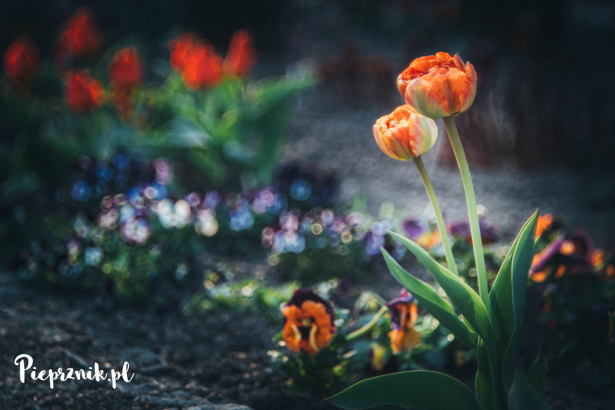 - Tulipany & bokehowe bratki. W tle płonące tulipany.