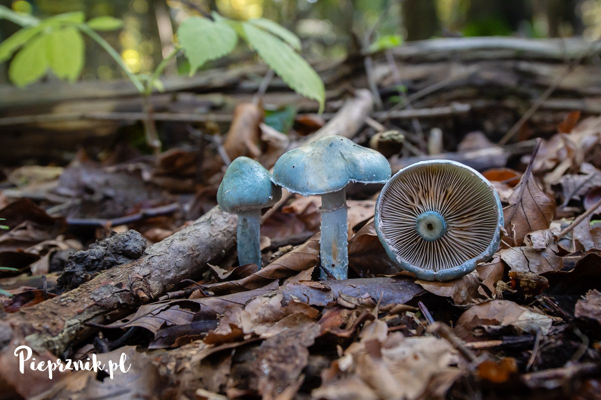 Poza rydzami znalazłam też grzyby, których dotąd nie widziałam! Piestrzyce giętkie i infułowatą! Koralownika lub goździeniowca. Oraz niebieskie grzyby – pierścieniaki grynszpanowe lub białoniebieskie.