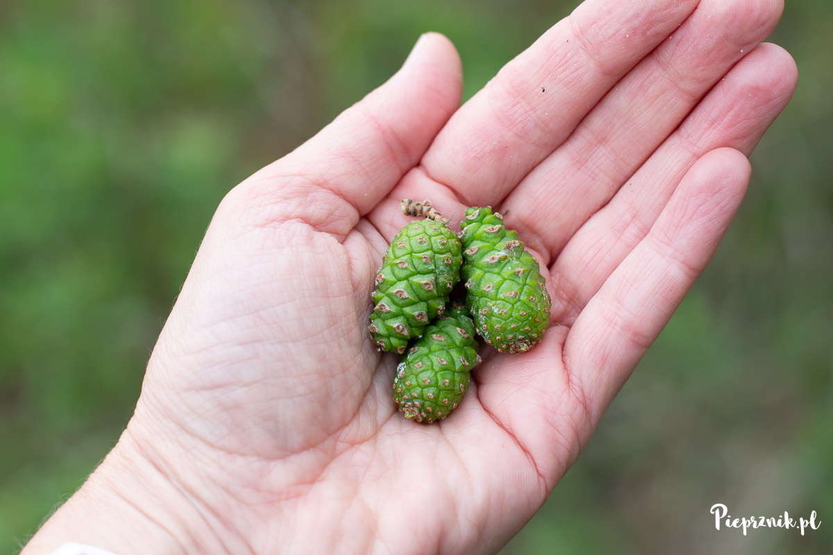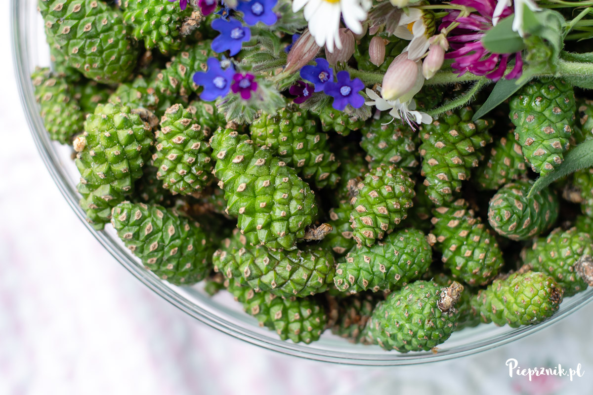 Można także zastąpić szyszki młodymi pędami sosnowymi, wtedy szukamy ich wcześniej – bo nawet na początku maja.