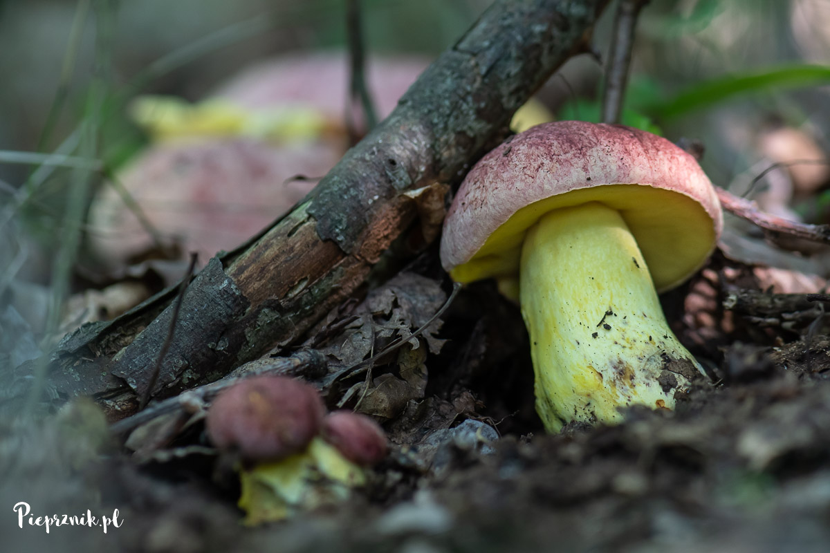 Dając upust mojemu kompletnemu zakochaniu w tym gatunku, masłoborowik królewski to prześliczny, intensywnie różowo-żółty grzyb. Nie jakiś tam różowawo-brązowy czy ochrowo-beżowawo-żółtawy. Grzyb po prostu jak malowany, jak wycięty z jakichś kolorowanek. Ma super różowy kapelusz, z super żółtym spodem i super żółty trzon. Przynajmniej ja widziałam takie owocniki😉
